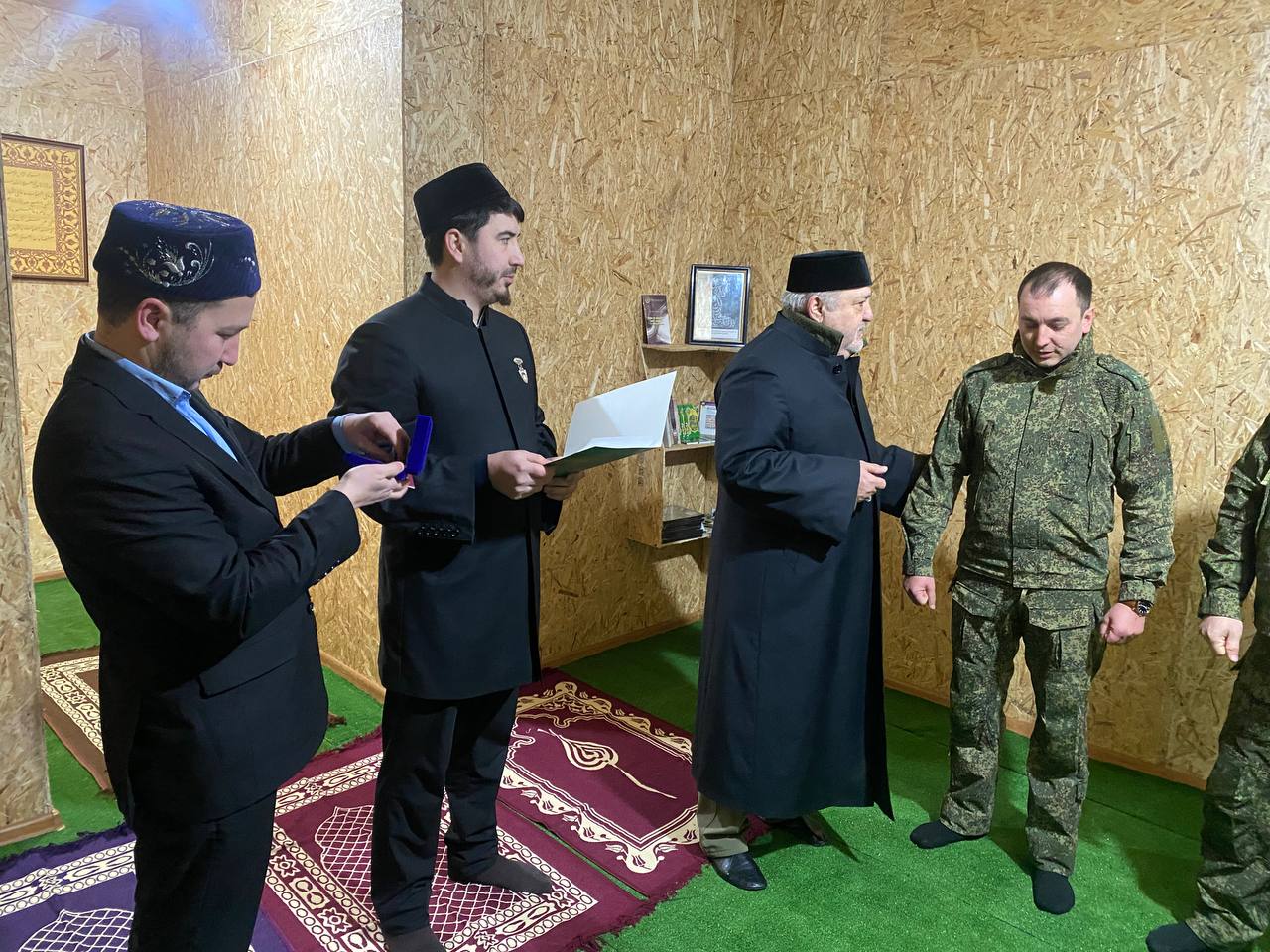 В зоне проведения специальной военной операции состоялось открытие блиндажной мечети, предназначенной для духовной поддержки военнослужащих-мусульман, выполняющих боевые задачи в полевых условиях. В церемонии открытия принял участие имам-мухтасиб, председатель Духовного управления мусульман Ростовской области (Донской мухтасибат) Наиль Кулахметов.